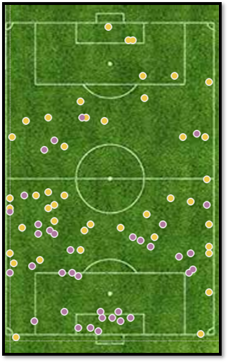 In the example on the right the coach asked to see the locations of all turnovers within a game.